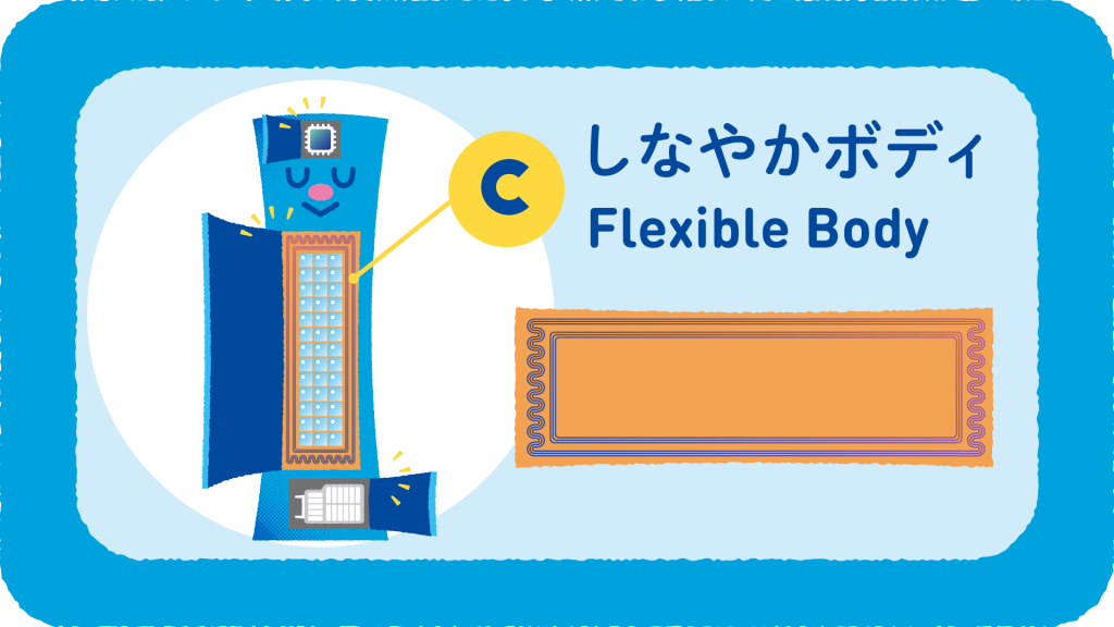 まだまだあるで〜。次は「やわらかお肌」。光をエネルギーに変えるボクの「肌」やねん。