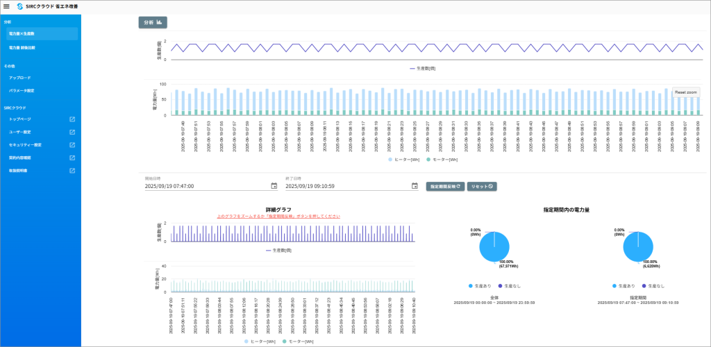 生産数量と電力量の関係を示す「相関分析機能」や、エネルギーロスを見つけて改善ポイントを洗い出す「エネルギーロス分析機能」を搭載。改善ポイントが明確になるので、実効性のある省エネ計画につなげられます。