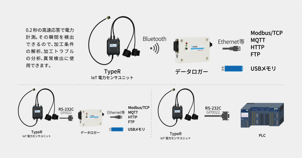 PLCとの接続により、既存のデータ収集システムへ統合可能です。